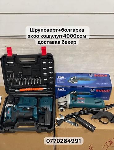 - Шуруповерт + болгарка Bosch GWS Professional, оба в комплектах. Цена на фото: 4000 сом.