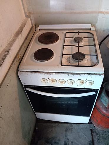 - Варочная поверхность: 2 газовые конфорки + 2 электрические (чугунные «блины»).
