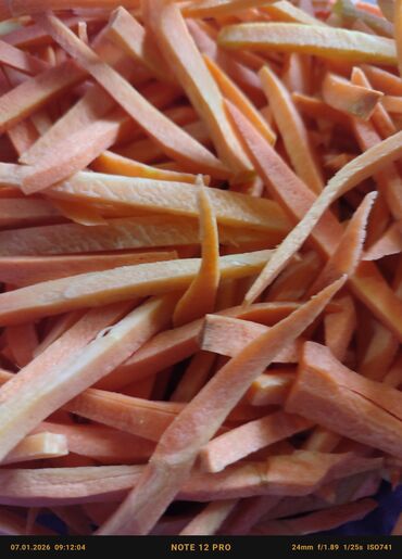 Нарезанная соломкой морковь - Свежая морковь, аккуратно нарезана тонкими брусками для быстрого использования. - Подходит для салатов, гарниров, корейской моркови, супов, соте, запекания и стир‑фра...Вход•Регистрация