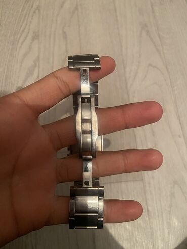 • Браслет: металлический, звеньевый, с раскладной застёжкой-бабочкой (folding clasp), без внешнего логотипа. Браслет выглядит массивным и надёжным, с заметными следами носки (мелкие царапины).