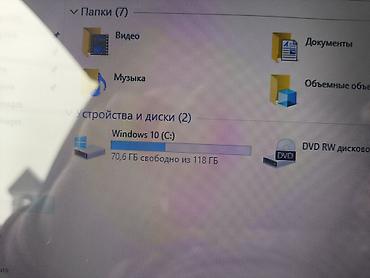 - Накопитель: 118 ГБ (около 70 ГБ свободно на диске C:)
