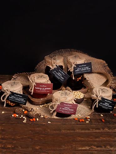 Таёжные лакомства в стеклянных банках с крафтовыми крышками и бирками: