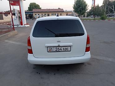 Белый универсал Opel Astra, оснащенный рейлингами на крыше, что увеличивает его функциональность для перевозки дополнительного багажа. Автомобиль имеет классический дизайн, характерный для моделей Opel того периода, с интегрированными фарами и решеткой радиатора. Затемненные задние стекла обеспечивают конфиденциальность и защиту от солнца. Модель подходит для повседневного использования, а также для поездок, требующих большего пространства для груза.