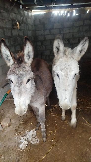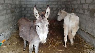 Пара ослов - Два осла: один серо-бурый, второй светло-серый. -