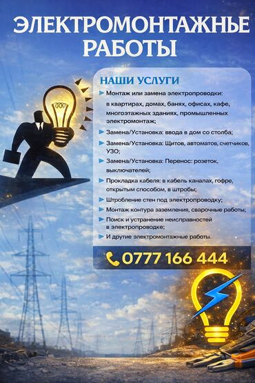 Услуги электрика. Все виды электромонтажных работ: от установки и замены розеток/выключателей до полной прокладки и замены электропроводки. 24/7 Вездь Что выполняется: - Монтаж и сборка электрощито...