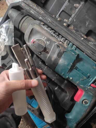 Бир эле жолу колдонулду,состояние жаны. Перфоратор сетевой в чемодане Комплектация: - перфоратор с боковой рукояткой и ограничителем глубины - 2 зубила (плоское и лопатка) - бур/насадка (видна в к...