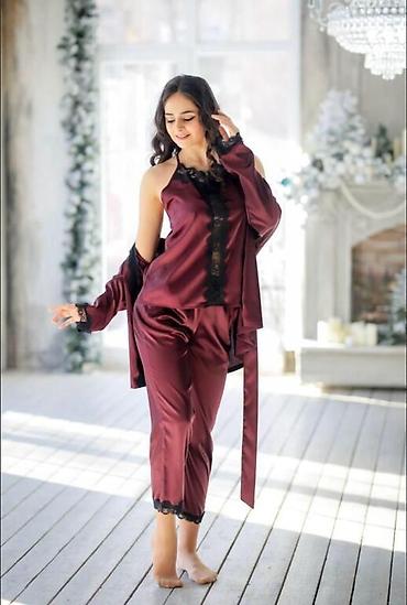 Пижама розовая,материал хлопок-новая!!!размер44-46 цена 350сом,пижама малиновая 44-46 б/у атлас 200сом,женский брючный костюм двойка-новый фирмы Lino Marano 44 размер,брючки сзади на резиночке,очен...