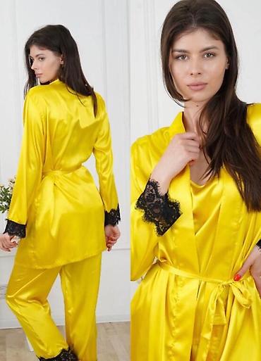 Продается женская пижама 90% шелк 7% полиэстера и 3% эластана есть Комплекты из кимано и штанов Цвета белый серый и голубой, размер 46-50 российский (1500 сом) Комлекты из ночнушки, шорт и халата ...