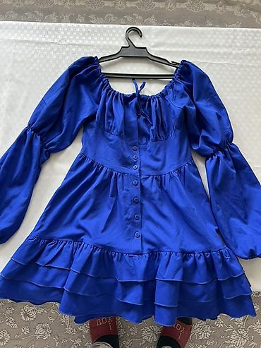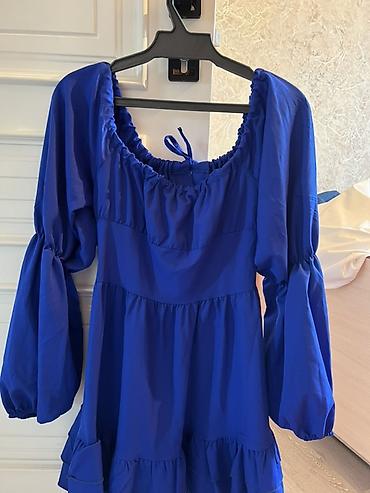 Платье женское, ярко‑синее. - Фасон: короткое (мини) с расклешённой