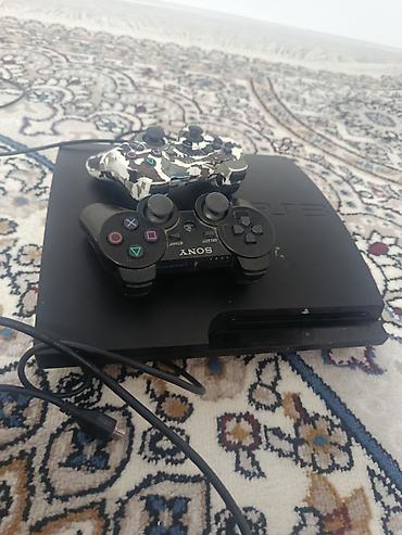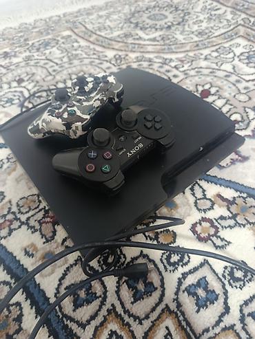 - Консоль Sony PS3 Slim (черная, матовая крышка с логотипом PS3)