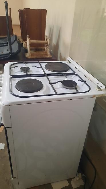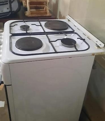 - 4 конфорки: 2 чугунные электрические «блины» + 2 газовые (решётка сверху).