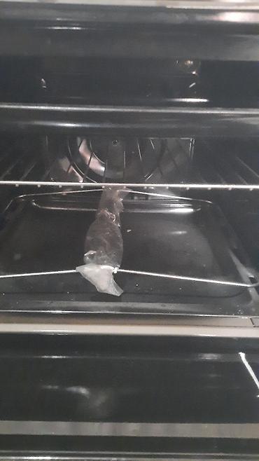 - Духовой шкаф с подсветкой, решёткой и противнем внутри.