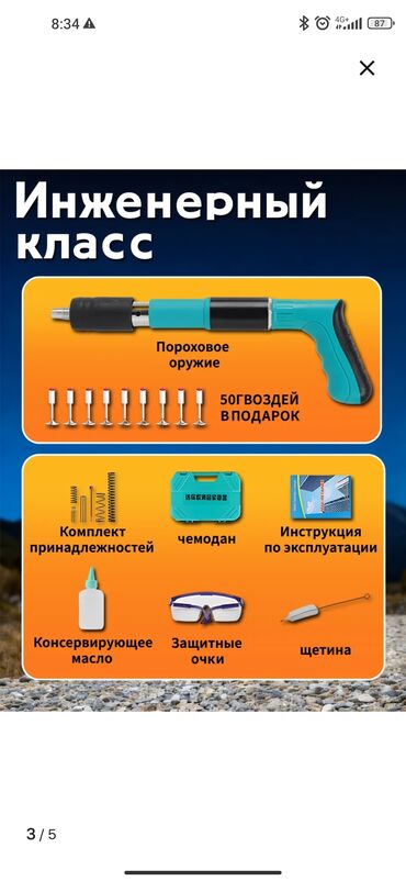 Пороховой монтажный пистолет инженерного класса и 100 гвоздей подарок