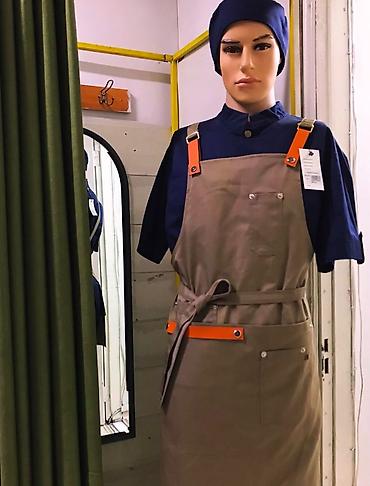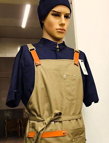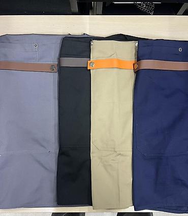 - Фартуки бариста/повара: модели с регулировкой по длине и плечевыми хлястиками, плотная износостойкая ткань. Карманы для блокнота, термометра, полотенца или инструментов. На некоторых моделях — декоративные и функциональные кожаные элементы/ремешки.