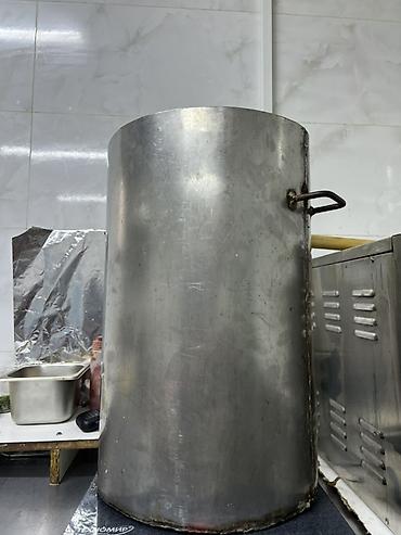 Круглая металлическая ёмкость/кастрюля без ручек,60 литров. выполненная из нержавейки на заказ ,Пищевая. Радиус 58 см высота 60 см. находится г. Бишкек. - Материал: металл (похоже на нержавеющу...