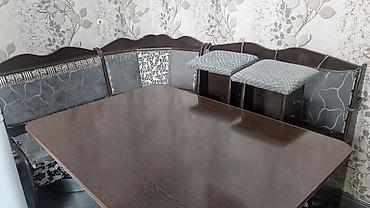 КУХОННЫЙ УГОЛОК!!! с мягкой обивкой и декоративными элементами в национальном стиле, дополненный мраморным столом и пятью табуретами. Комплект создает уютную обеденную зону, подходящую для семейны...
