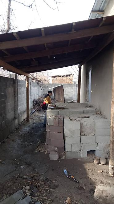- Во дворе есть навес на деревянных стойках, хозяйственная зона и площадка под уличную печь/мангал из блоков.