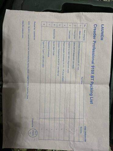 - Диагностический планшет LAUNCH (серия X‑431; на задней панели: Auto Smart Diagnostic Tool, модель OXANX31BPROW9 / 919JX8Y, вход 5 В⎓5 А).
