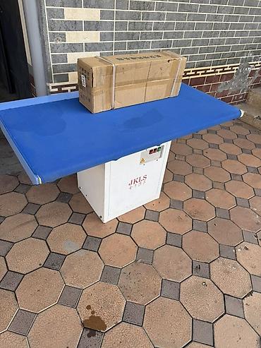 - Профессиональный гладильный стол с широкой рабочей поверхностью, обтянутой термостойкой тканью синего цвета.для швейной фурнитуры, швеи.