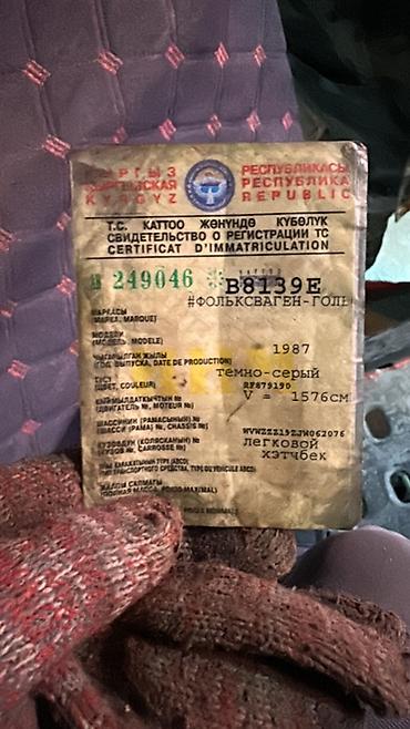 Дополнительно: на фото также показано свидетельство о регистрации авто (Volkswagen Golf, хэтчбек, 1987 г., тёмно‑серый, объём 1576 см³) как пример документации, сопровождающей перевозку.