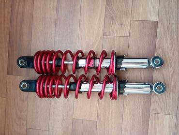 Задние аморты на скутера Самурай, Танк, Макси, М8. Пара амортизаторов для скутера длиной 335 мм. Доступны в двух цветовых вариантах: с черными или красными пружинами. Хромированный корпус придает ...