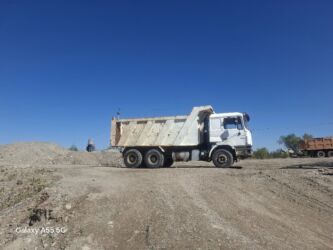 - Полная масса и назначение: тяжёлый самосвал для перевозки сыпучих материалов (песок, щебень, грунт), работа в карьерах и на стройке.