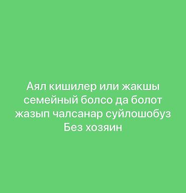 Тынч таза жашаган кыздар или аял кишилер керек , вредный привычкасы жок ичпеген чекпеген семья болсо дагы болот жазгыла калганын суйлошкондо айтам