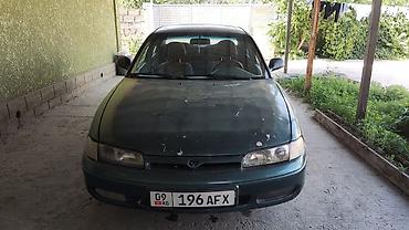 Mazda 626 (седан), красный цвет, киргизские номера. Кузов: - 4 двери, классический седан. - Передняя оптика прямоугольная, пластиковые бамперы. - Легкосплавные/штампованные диски с декоративными к...