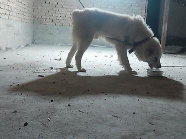 Щенки/молодые собаки крупной породы (тип алабая/овчарки) с густой белой и пятнистой шерстью. Подойдут для охраны двора, хозяйства или загородного дома.