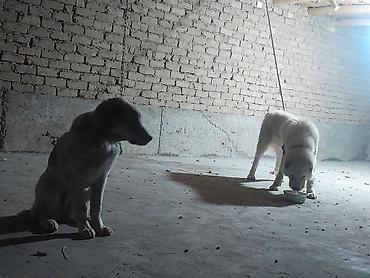 Щенки/молодые собаки крупной породы (тип алабая/овчарки) с густой