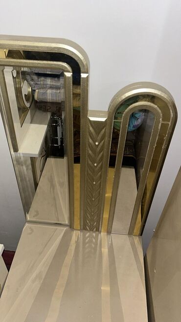 Классический комплект мебели для спальни в тёплом оттенке ореха с резными декоративными элементами. Состав: - Двуспальная кровать с высоким фигурным изголовьем и изножьем. - Основание под матрас —...