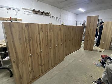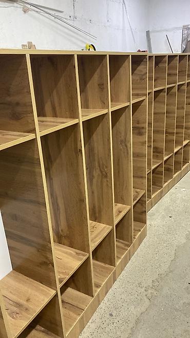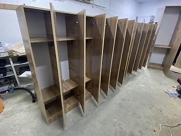 Габариты модулей на фото: узкие вертикальные секции стандартной высоты под потолок мастерской (ориентируйтесь по изображениям).