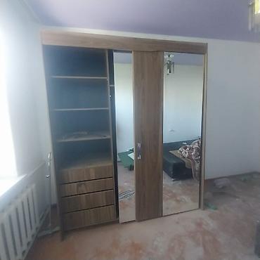 - Материал: ЛДСП под дерево, фасады — две зеркальные раздвижные двери и одна глухая дверь.