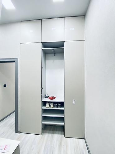 - Подходит для узких коридоров: экономит место, обеспечивает большой объём хранения за счёт высоты до потолка.