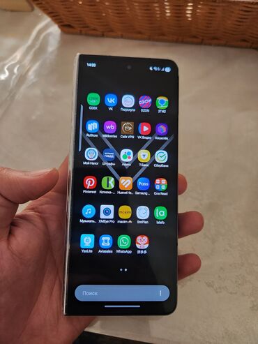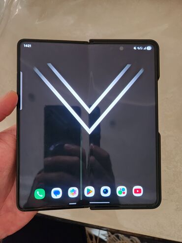 РаскладушкаСмартфон-раскладушка с большим внутренним складным экраном и внешним дисплеем. самсунг z fold 4 есть дефект иногда моргает левая сторона и полоска по середине торга нет нахожусь город Манас Жалал абад