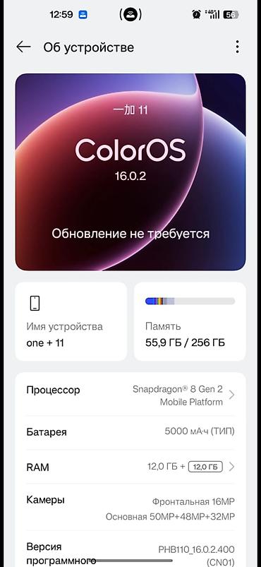 Смартфон OnePlus 11, ColorOS 16.0.2