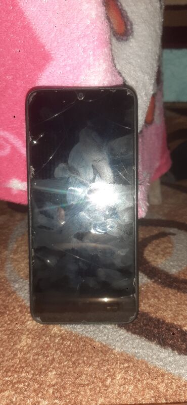 - На передней панели установлено защитное стекло/плёнка с трещинами; корпус с крышкой тёмного цвета, модуль камер с маркировкой AI Camera и сканер отпечатка.