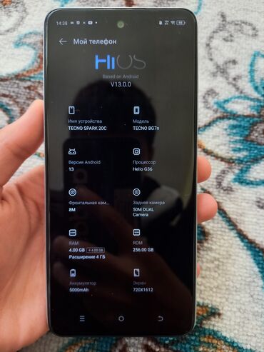 Смартфон TECNO SPARK 20C (модель BG7n) на HiOS V13.0.0, Android 13.
