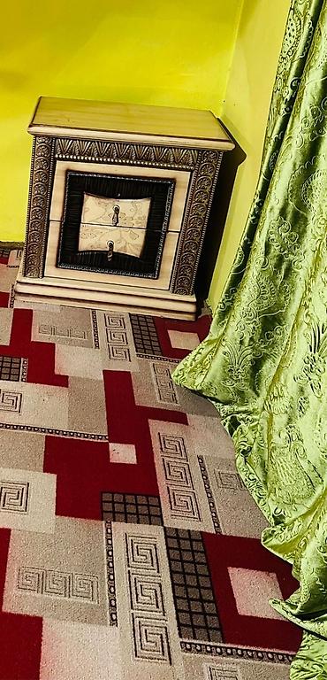 - Прикроватная тумба с двумя выдвижными ящиками и рамочным декором.