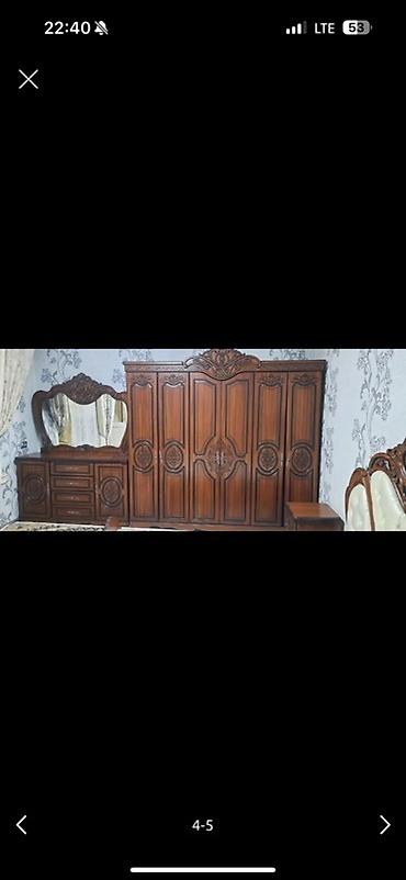 САТЫЛАТ КОМПЛЕКТ СПАЛЬНЯ,ШКАФ,КУЗГУ,ТУМБОЧКА! 2 ай колдонулду‼️ Спальный гарнитур в классическом стиле, цвет слоновая кость с изящным декоративным рисунком.