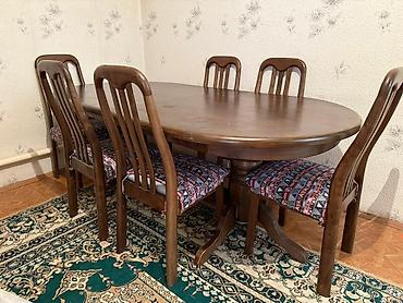 Табигый жыгачтан жасалган овал формадагы стол жана 6 отургуч сатылат.