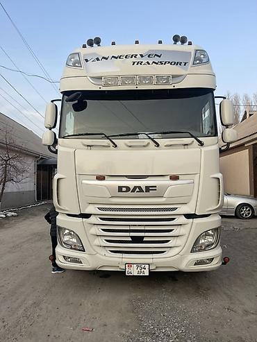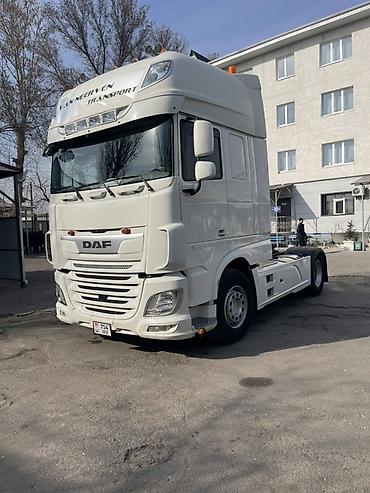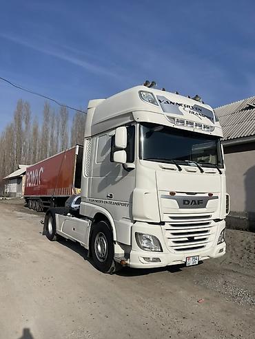 DAF тягач с прицепом (еврофура/тент) - Марка: DAF - Тип: магистральный тягач с полуприцепом тентового типа (штора) - Кабина: высокая, с аэродинамическим обвесом - Оснащение кабины: большие зеркала...