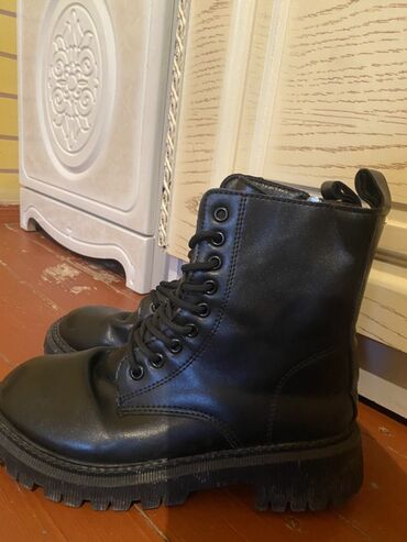 Женские черные ботинки/полусапоги на массивной подошве. - Материал