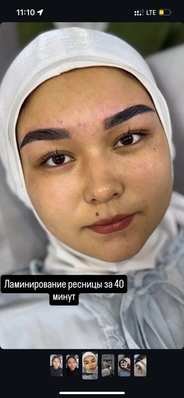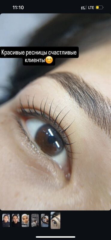 - Ламинирование/лифтинг ресниц: завиток, визуальное удлинение и разделение волосков, естественный глянец.
