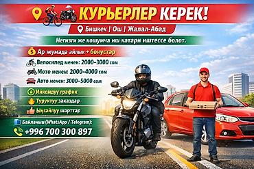 🚀 Стань курьером в сервисе Еда и зарабатывай! 💸 📍 Города: Бишкек, Ош, Джалал-Абад (Манас) Ты ищешь свободу, высокий доход и классные бонусы? Присоединяйся к нашей команде! Ты сам решаешь, когда ра...