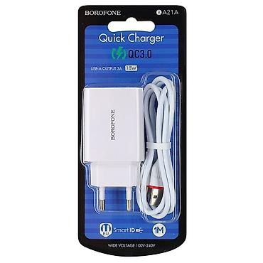 Зарядное устройство BOROFONE BA21A Quick Charger + кабель micro‑USB +