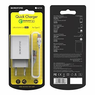 Зарядное устройство BOROFONE BA21A Quick Charger + кабель micro‑USB + кабель Type C