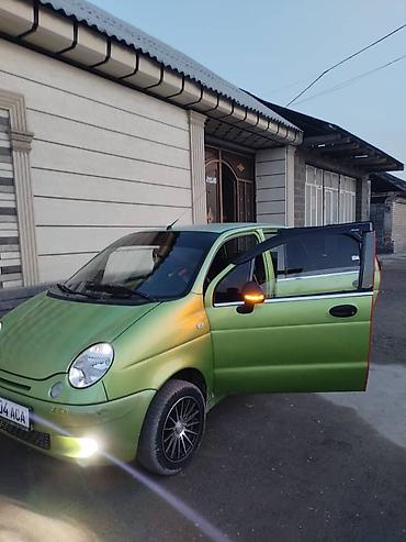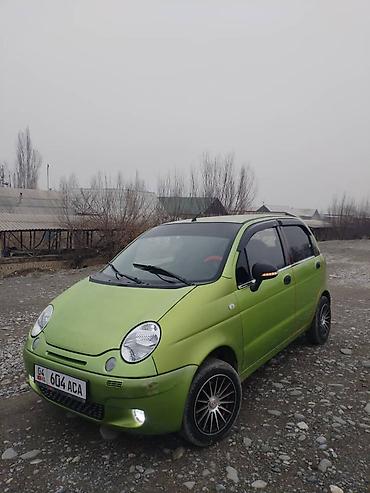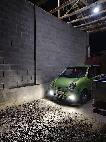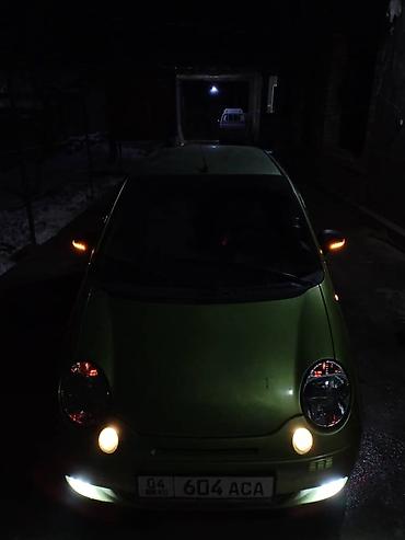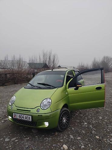 Зеленый компактный городской хэтчбек. Трёхдверный кузов, передний привод. Круглая оптика, передние противотуманные огни, светодиодные ДХО/ходовые огни в нижней части бампера. Номерной знак формата KG. Установлены боковые повторители поворотов в зеркалах/крыльях, работают. Один из основных передних фаровых модулей отсутствует, второй – на месте; габаритные огни и поворотники функционируют. Низкий капот, короткие свесы, компактные габариты — удобно для узких улиц и парковки. Подходит для повседневных поездок по городу, экономичный маленький мотор, простой в обслуживании. Цвет кузова – матовый зелёный.