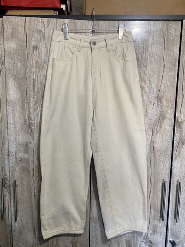 Брюки джоггер-кроя из плотного хлопкового денима, цвет молочный/экрю.