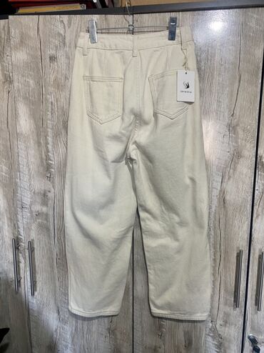 - Посадка: высокая, прямые штанины с лёгким заужением к низу.